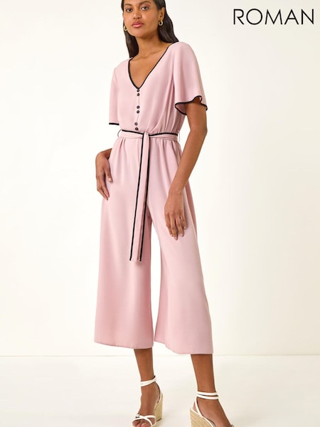 Roman Pink Tie Waist Wide Leg Jumpsuit