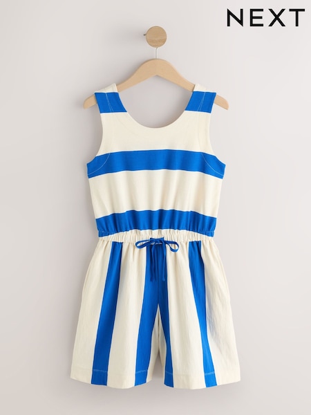 Blue/White Stripe Sleeveless Tie Waist Cotton Playsuit