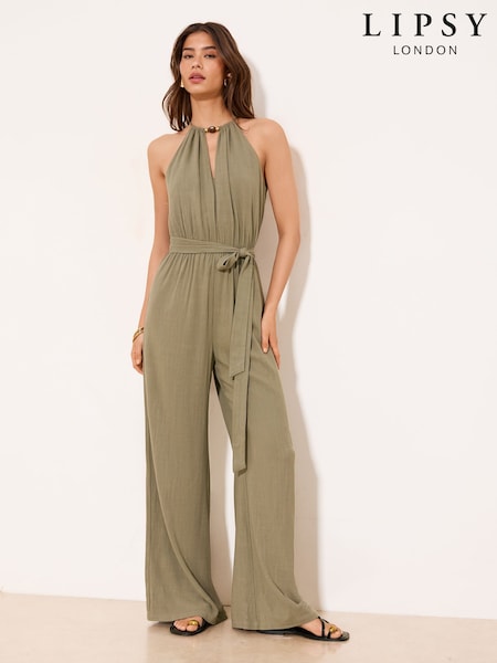 Lipsy Green Khaki Halter Neck Jumpsuit