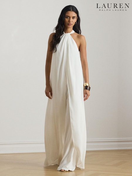 Lauren Ralph Lauren White Woven Wide Leg Jumpsuit