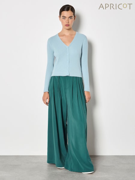 Apricot Blue Ribbed Knit Scalloped Cardigan