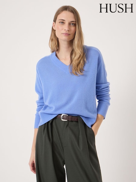Hush Blue Colette Cashmere V-Neck Saddle Sleeve Jumper