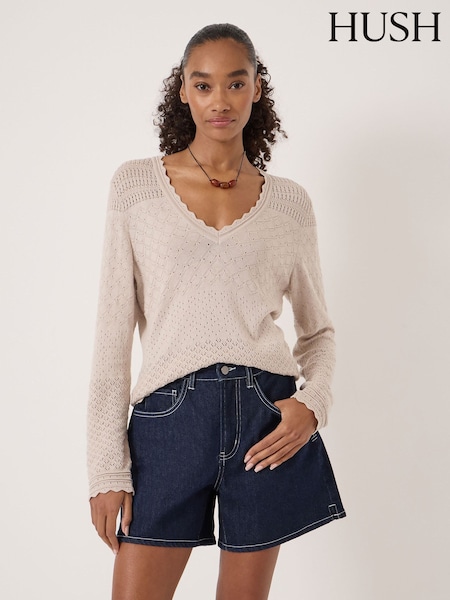 Hush Natural Pointelle Cotton V-Neck Jumper