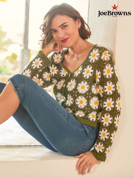 Joe Browns Green Darling Daisy Crochet Cardigan