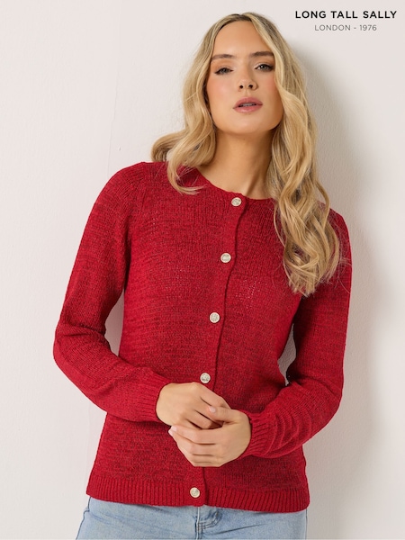 Long Tall Sally Red Crochet Stripe Polo Top Jumper