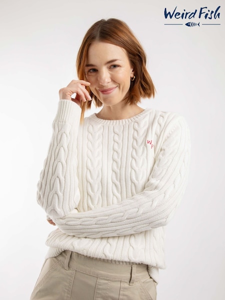 Weird Fish Cream Amberise Crew Neck Cable Knit Jumper
