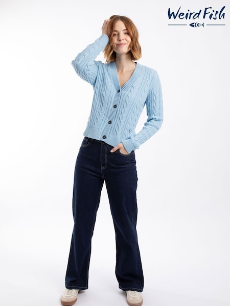 Weird Fish Sky Blue Constance Cable Knit Cardigan