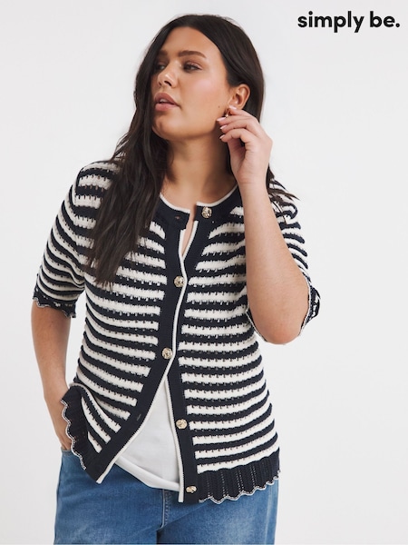 Simply Be Blue Stripe Short Sleeve Frill Cardigan
