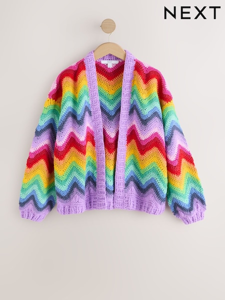 Multi Rainbow Hand Knit Tie Front Crochet Cardigan