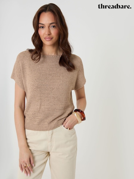 Threadbare Brown Slash Neck Short Sleeve Jumper