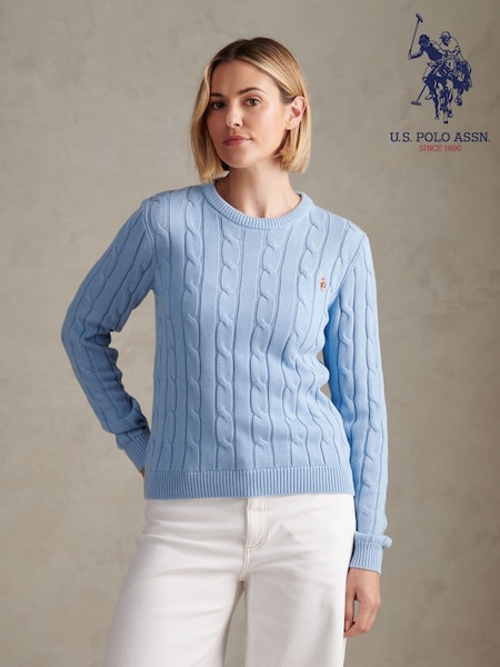 U.S. Polo Assn. Dark Blue Crew Neck Cable Knit Jumper