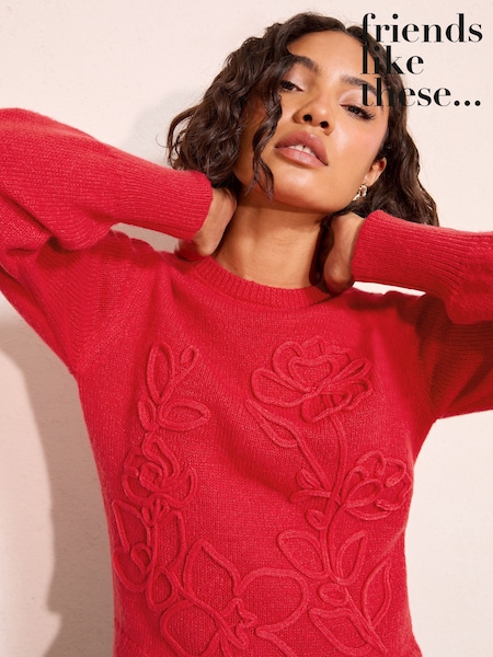 Love & Roses Ivory Embroidered Detail Knitted Jumper