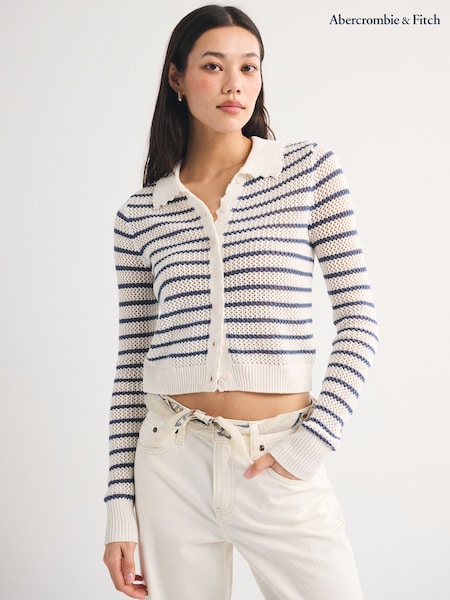VERO MODA Cream/Blue Long Sleeve Open Cardigan