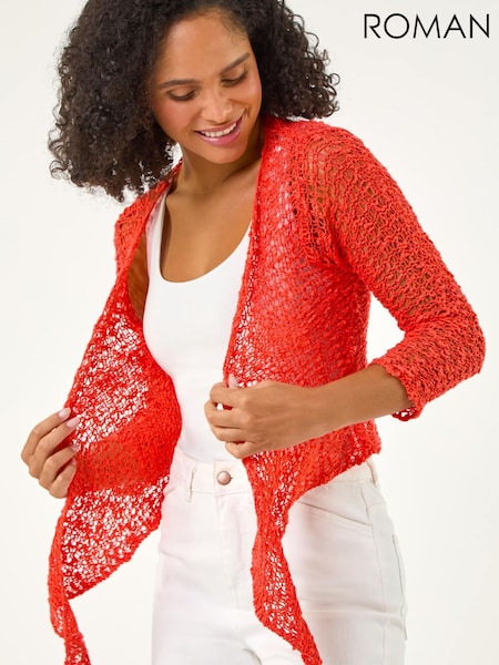 Roman Orange Waterfall Popcorn Knitted Cardigan