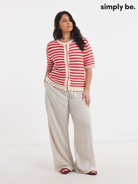 Simply Be Red Stripe Short Sleeve Frill Cardigan