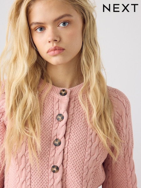 Blush Pink Cable Knit Long Sleeve Cotton Cardigan