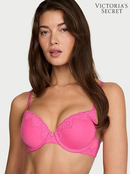 Victoria's Secret Pink Radiance Full Cup Push Up Cotton Lace Trim Bra