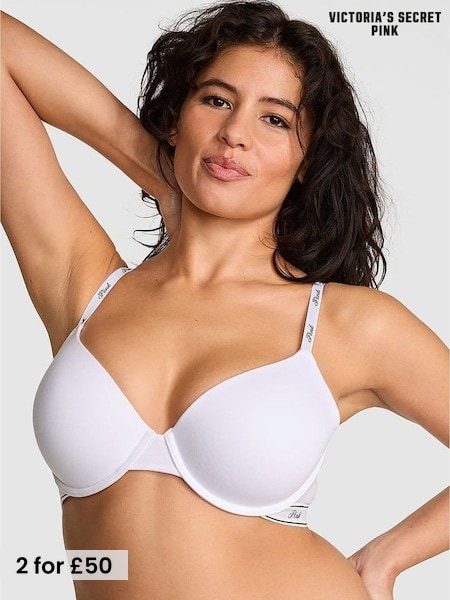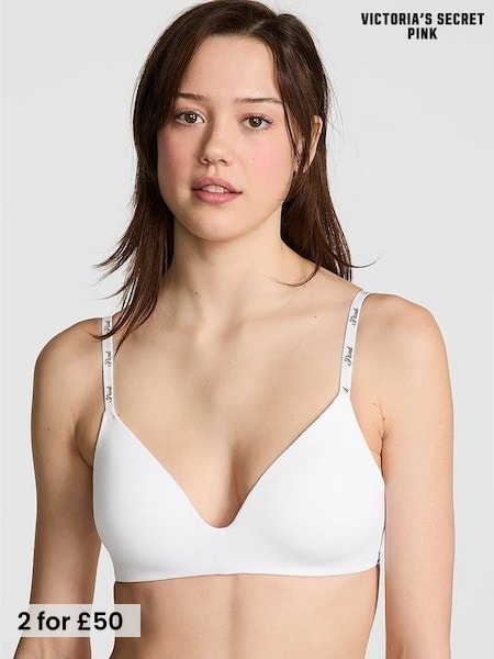 Victoria's Secret Pink White Non Wired Lightly Lined Logo Bra