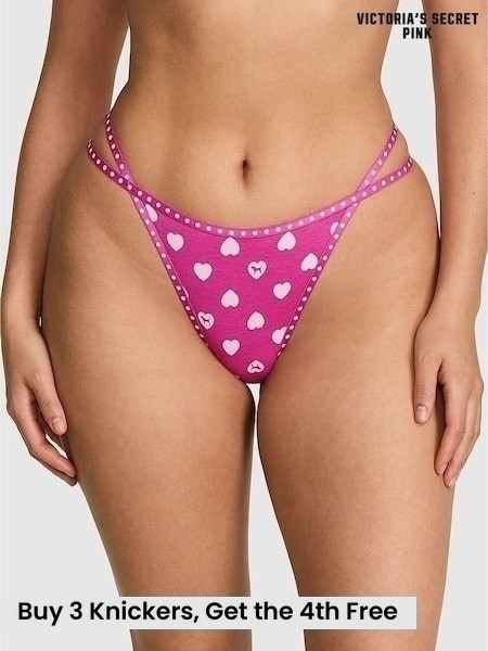 Victoria's Secret PINK Hot Stuff Pink Mini Scoop Thong Cotton Logo Knickers
