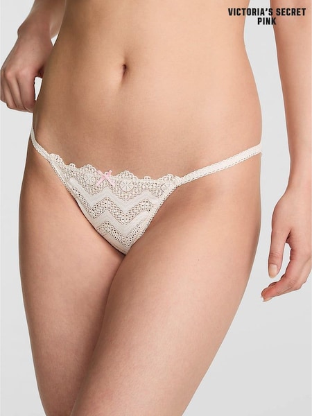 Victoria's Secret Pink Coconut White String Bikini Crochet Lace Knickers