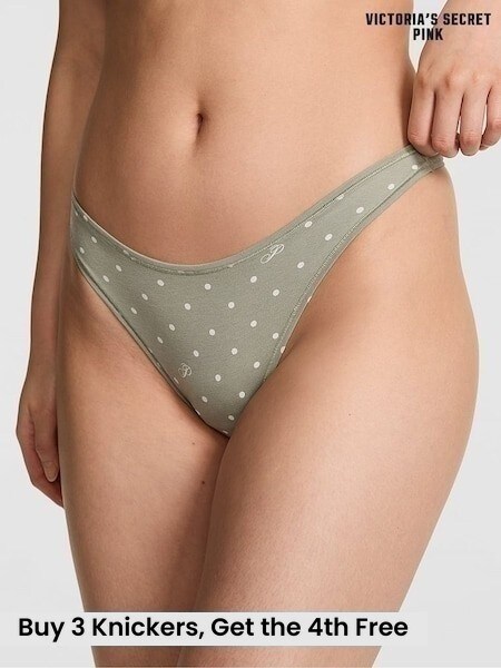 Victoria's Secret Pink Slate Green Polka Dots Thong Cotton Knickers