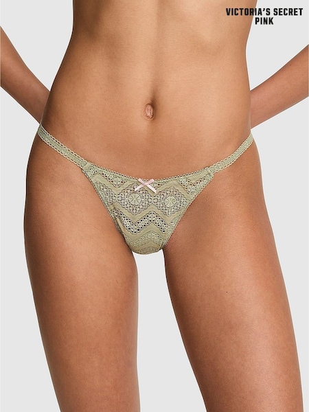 Victoria's Secret Pink Slate Green Mini Scoop Thong Crochet Lace Knickers