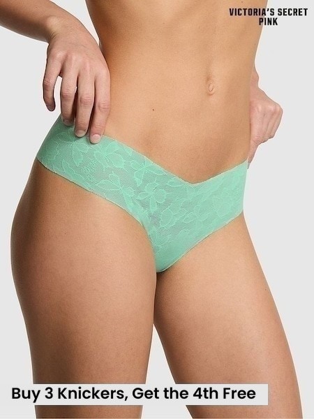 Victoria's Secret Pink Sea Green Thong No Show Lace Knickers