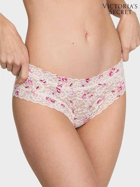 Victoria's Secret White Polka Dot Cheeky Cotton Lace Waist Knickers