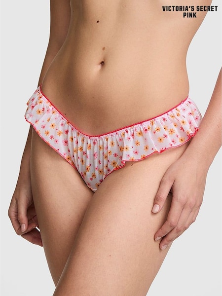 Victoria's Secret Pink White Floral Tanga Mesh Knickers