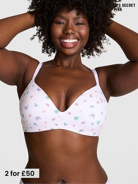 Victoria's Secret PINK White Butterfly Print Non Wired Push Up Bra