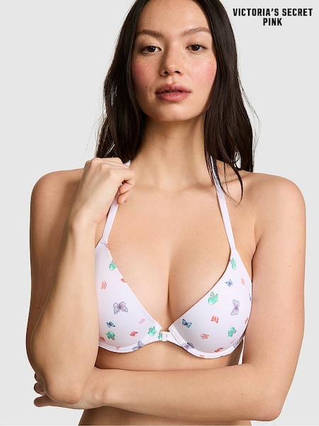 Victoria's Secret PINK White Butterfly Print Push Up Front-Close Push Up Bra
