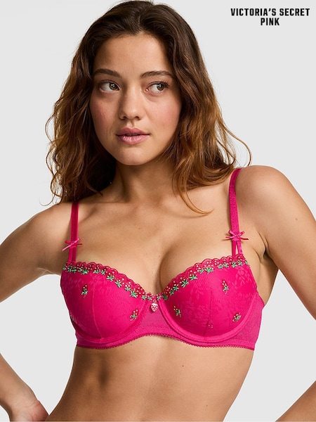 Victoria's Secret Pink Hot Stuff Pink Lightly Lined Strawberry Embroidery Bra