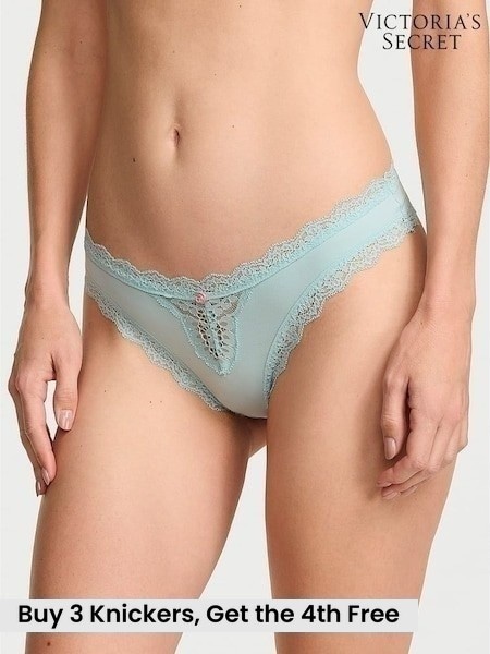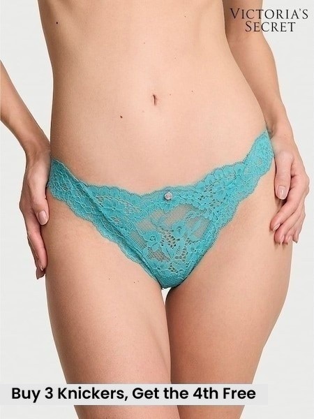 Victoria's Secret Canal Blue Lace Trim Thong Knickers