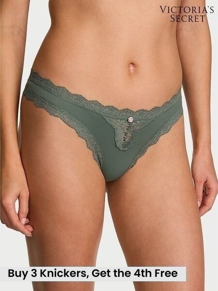 Victoria's Secret Faded Sage Lace Trim Thong Knickers
