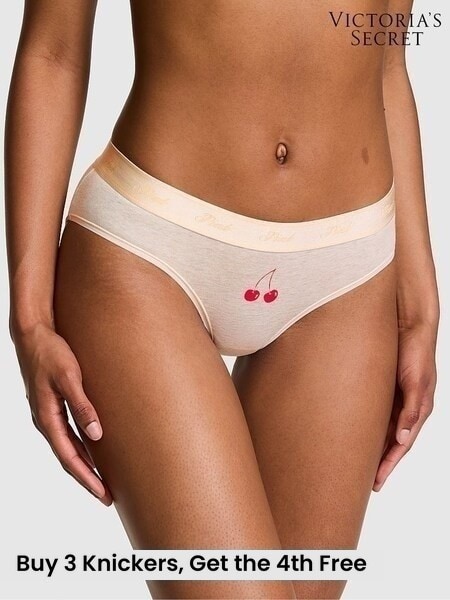 Victoria's Secret PINK Natural Heather Nude Cherry Hipster Cotton Logo Knickers