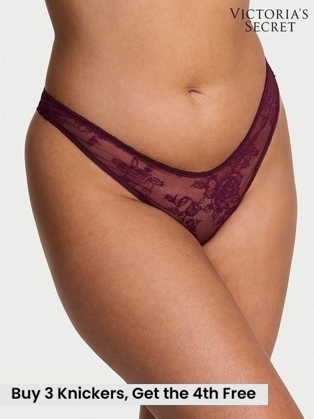 Victoria's Secret Rich Maroon Red Thong Charm Lace Knickers