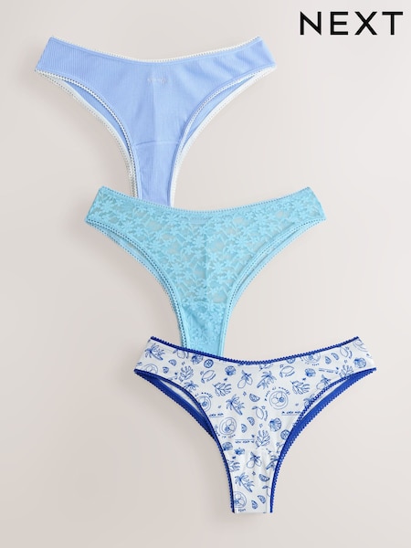Blue Brazilian Cotton And Lace Knickers 3 Pack