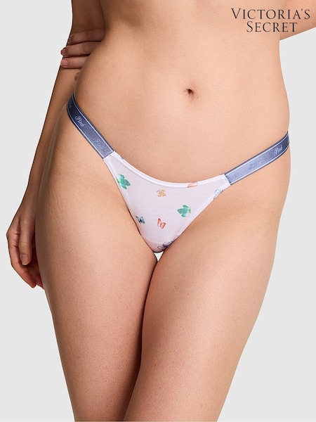 Victoria's Secret PINK White Butterfly Print Mini Scoop Thong Cotton Logo Knickers