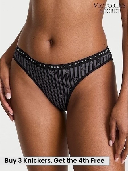 Victoria's Secret Black Logo Stripes Bikini Knickers