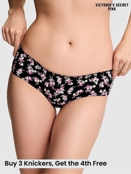 Victoria's Secret Pink Black Floral Print Cheeky Tie Detail Knickers
