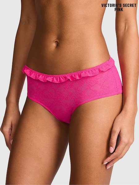 Victoria's Secret Pink Hot Stuff Pink Cheeky Strawberry Embroidery Lace Knickers