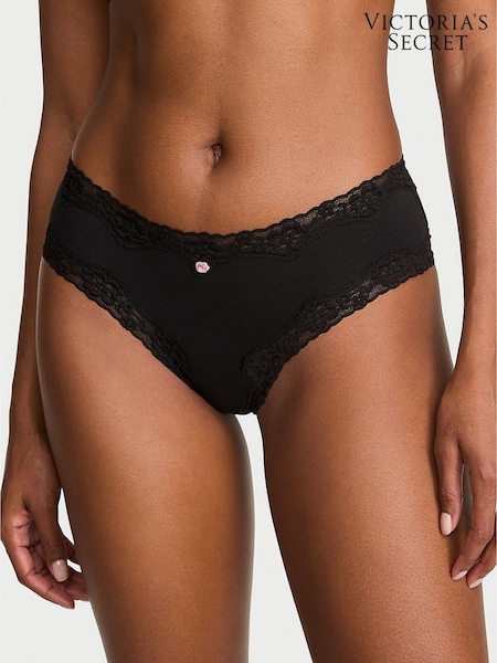 Victoria's Secret Black Cheeky Cotton Lace Waist Knickers