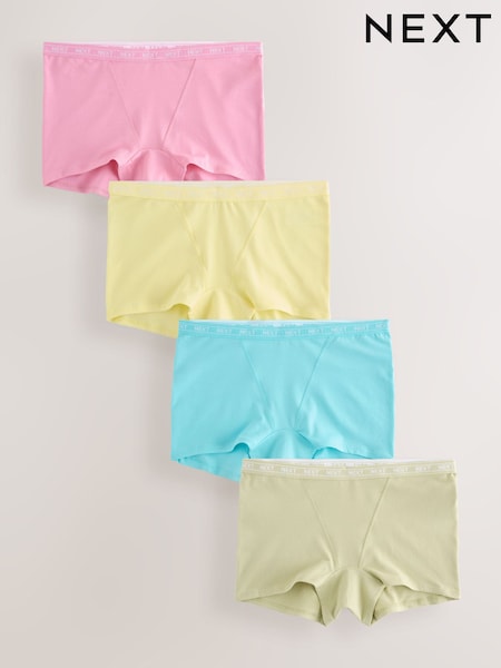 Pink/Yellow/Blue/Green Boyshort Cotton Logo Knickers 4 Pack
