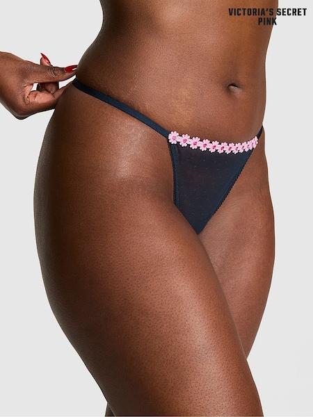 Victoria's Secret Pink Noir Navy Blue G-String Daisy Embroidery Knickers