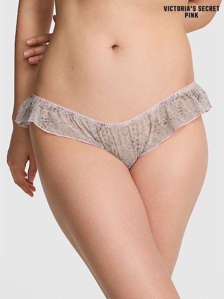 Victoria's Secret Pink Natural Leopard Brown Print Tanga Mesh Knickers