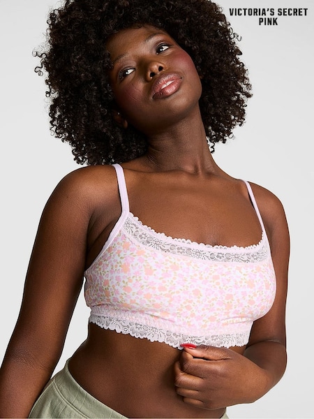 Victoria's Secret Pink Lilac Floral Print Scoop Cotton Lace Trim Bralette