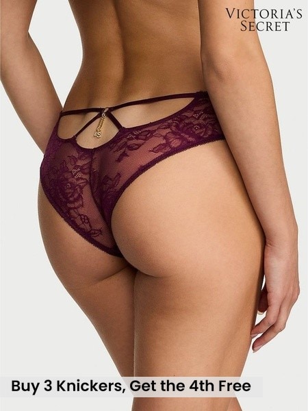 Victoria's Secret Rich Maroon Red Cheeky Charm Lace Knickers