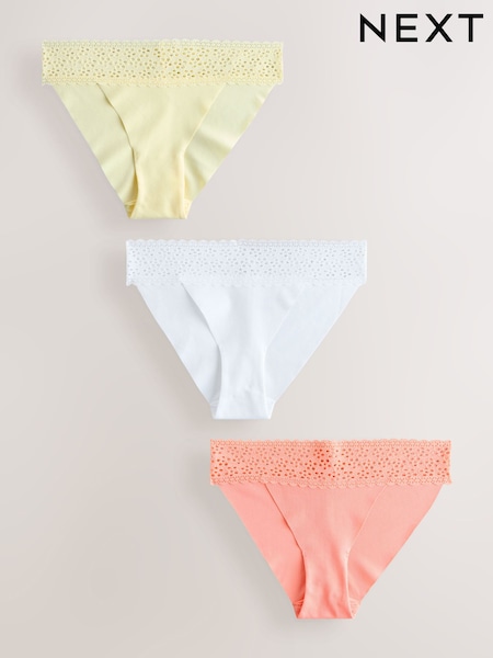 White/Yellow/Peach Tanga No VPL Lace Top Cotton Knickers 3 Pack