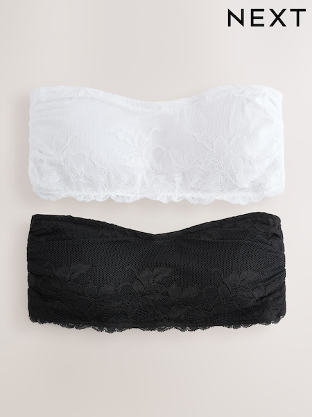 Black/White Cotton & Lace Bandeau Ultimate Comfort Bras 2 Pack