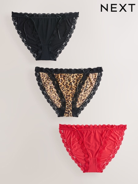Black/Animal/Red Tanga Microfibre And Lace Knickers 3 Pack